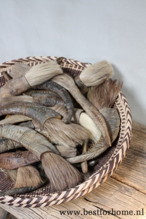 Stoere Grote Chinese Oude Rieten Veger Robuust Houten Object NO.412