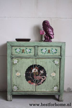 Aziatisch Kleurrijk Beschilderd Kastje Uniek Vintage Style Kast NO.455 VERKOCHT!