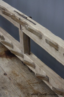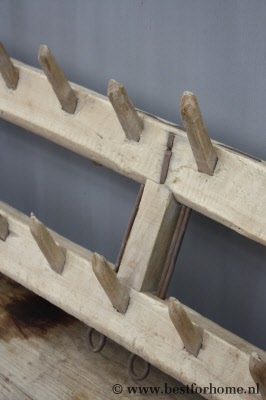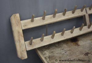 • Rustiek uniek groot oud houten wandrek / kapstok NO.317...