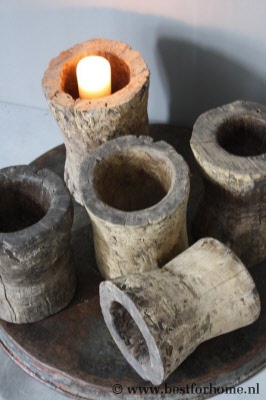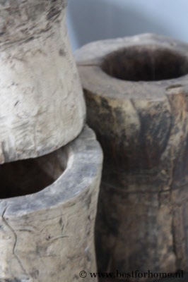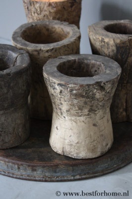 • Unieke robuust oude houten vijzel / pot...