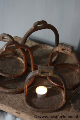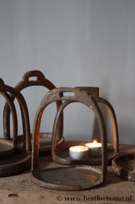 Stoere Unieke Metalen Stijgbeugel Kandelaar Sober Robuust Landelijk NO.008