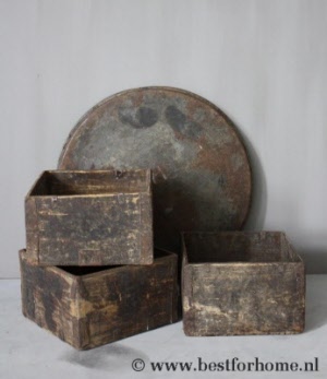 Unieke Landelijke Vierkante Oud Houten Bak Sober Stoer Robuuste Schaal NO.550