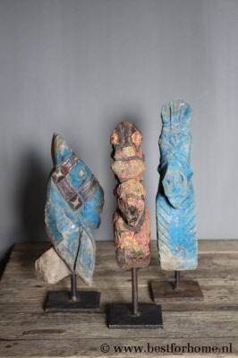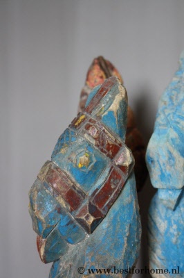• Uniek oud houten paardje op metalen voetje uit India NO.076...