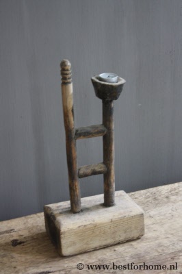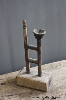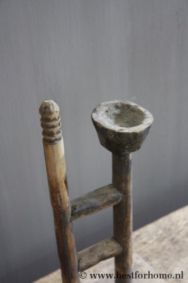 Oude Sobere Houten Kandelaar Uniek Stoer Landelijk Object NO.430