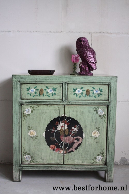 • Oosters gekleurd uniek houten kastje / dressoir NO.455...