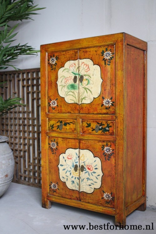 • Bohemian style gekleurd uniek houten kast uit China NO.983...