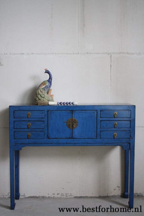 Oosterse Wandtafel Vintage Blauw Unieke Chinese Houten Sidetable NO.173