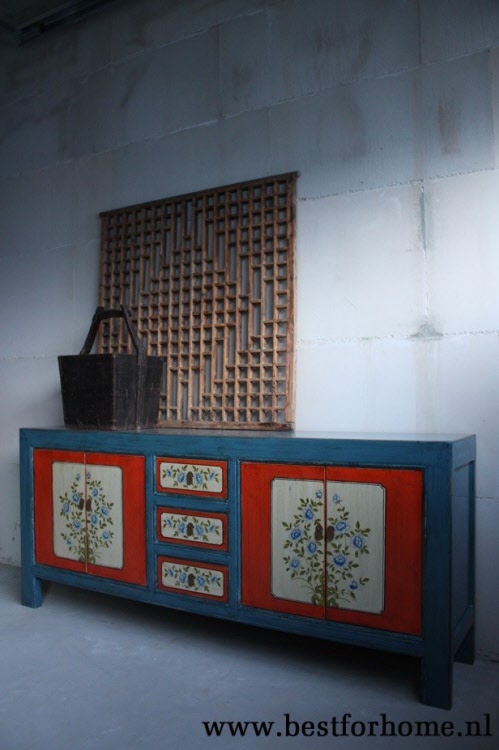 • Kleurrijk groot uniek houten dressoir / kast uit Azië NO.904...