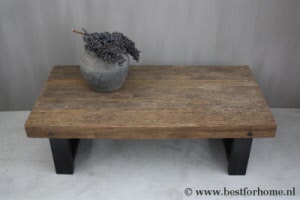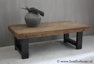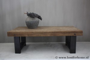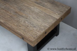 • Stoere salontafel met robuuste houten blad en metalen onderstel NO.772...