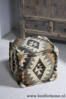 Sobere Etnische Kelim Kruk Stoere Poef NO.30 VERKOCHT!