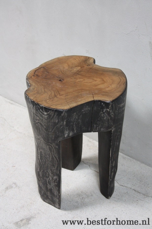 • Stoere unieke boomstam / wortelhouten kruk mix zwart en naturel hardhout NO.596...