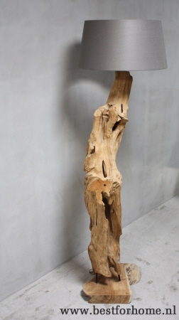 • Unieke robuuste zware teak root / boomstam staande lamp NO.209...