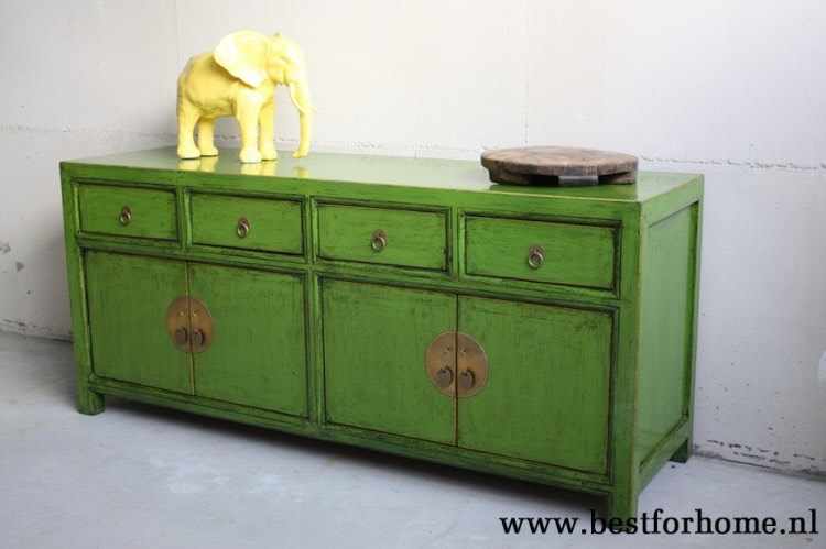 • Oosterse unieke groen gekleurde kast / dressoir uit China NO.292...