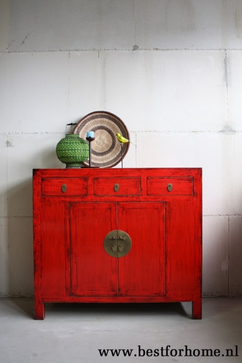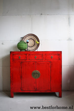 • Chinese unieke rood gekleurde kast NO.493...