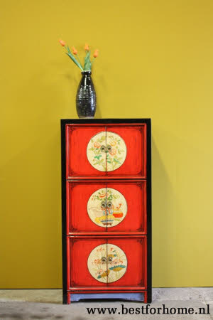 • Oosters uniek gekleurd 6-deurs houten kastje uit het verre oosten NO.606...