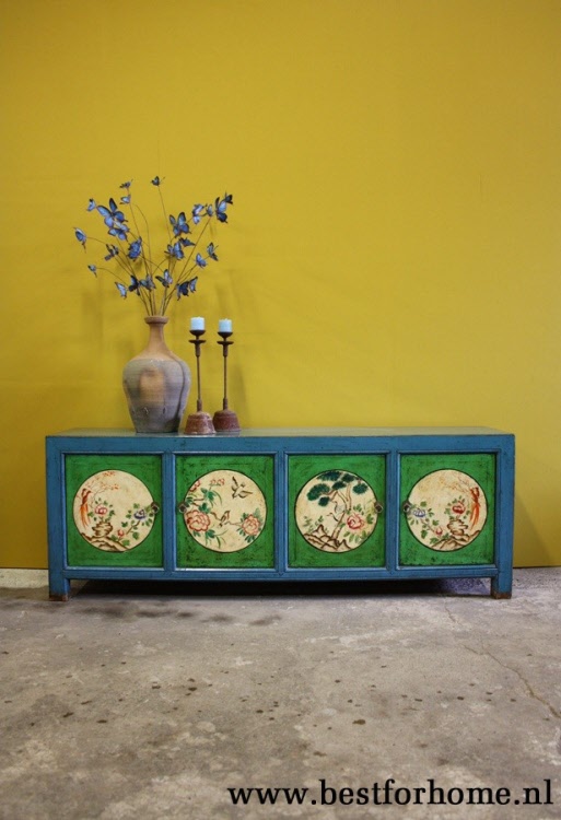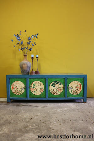 • Kleurrijk authentiek oosters beschilderd houten dressoir / kast / wandmeubel NO.592...